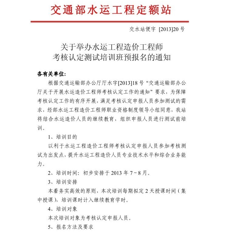 4. 交水站便字[2013]20號水運造價師培訓截止6月底